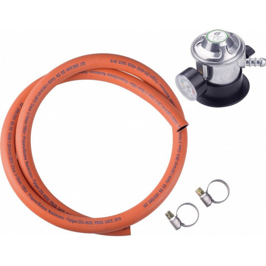 GaasiregulaatorI komplekt Click-On manomeetriga 30mbar/1,5 kg/h LUCIFER + 2 klambrit + gaasivoolik 1,2m