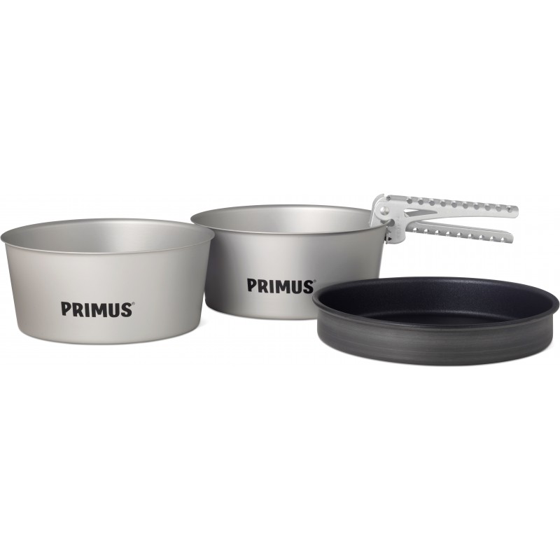 PRIMUS ESSENTIAL POT SET 1.3L sisaldab 2 tk 1.3l alumiiniumist potti ja panni mis on anodiseeritud ja mitte kleepuva kattega. Komplektis on kaasas käepide millega on turvaline liigutada potte. Komplekt on mõeldud 1-3 inimesele.